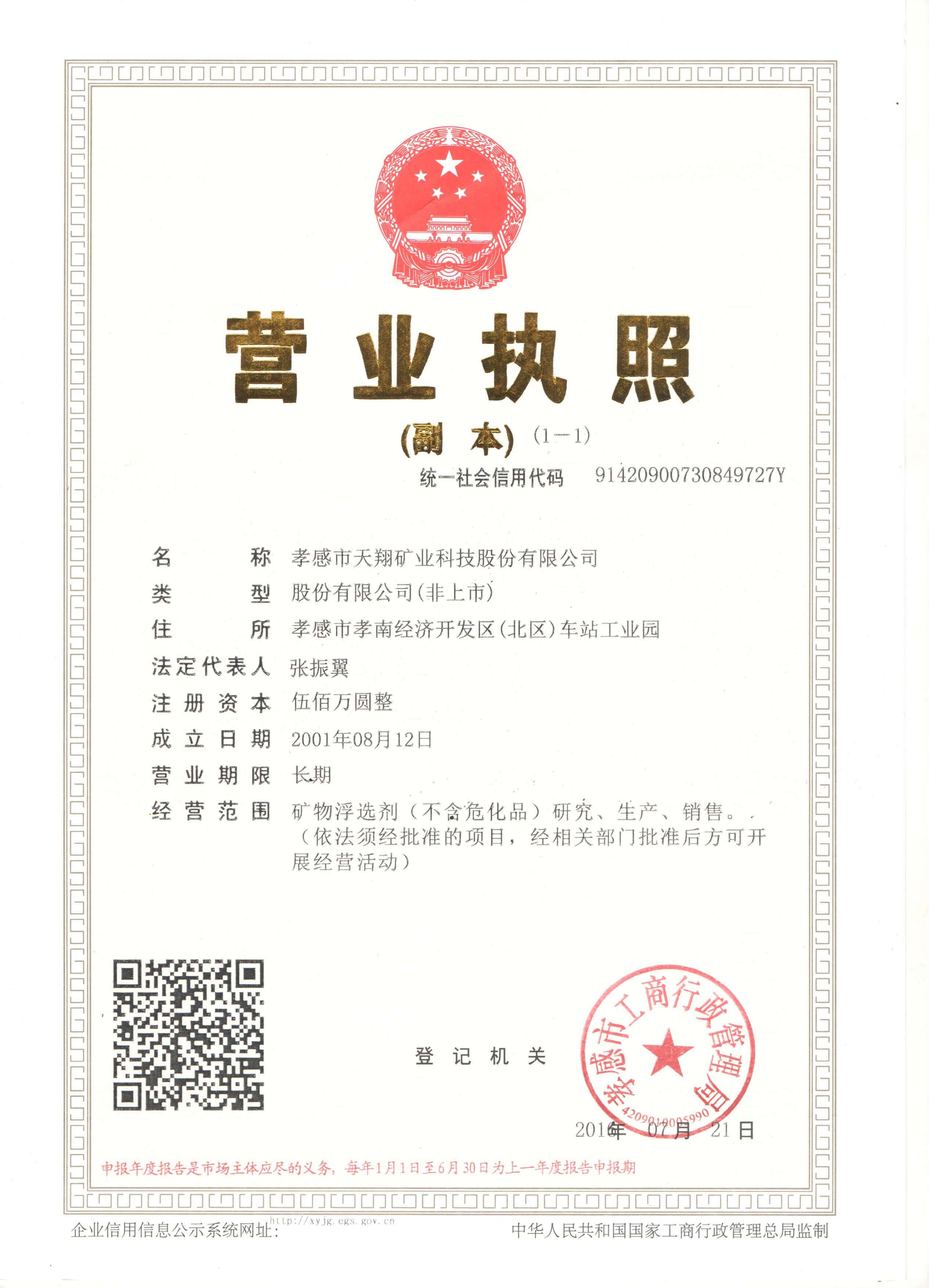 孝感市天翔礦業(yè)科技股份有限公司是一家專業(yè)從事氧化礦浮選藥劑研究開發(fā)和生產(chǎn)的企業(yè)。成立于1996年,經(jīng)過20多年的研發(fā)與生產(chǎn)實(shí)踐,產(chǎn)品覆蓋磷礦、鋰礦、螢石礦、鎢礦、錫礦、鈦鐵礦、鋁土礦、稀土礦等多礦種的浮選藥劑,在業(yè)內(nèi)享有一定知名度。一份耕耘,一份收獲,多年的積累一定會(huì)產(chǎn)生行業(yè)認(rèn)可的高端產(chǎn)品。公司將會(huì)提供給礦山高效、有競爭力的產(chǎn)品,會(huì)與礦山企業(yè)一道,共同為行業(yè)發(fā)展作出優(yōu)秀的貢獻(xiàn)。